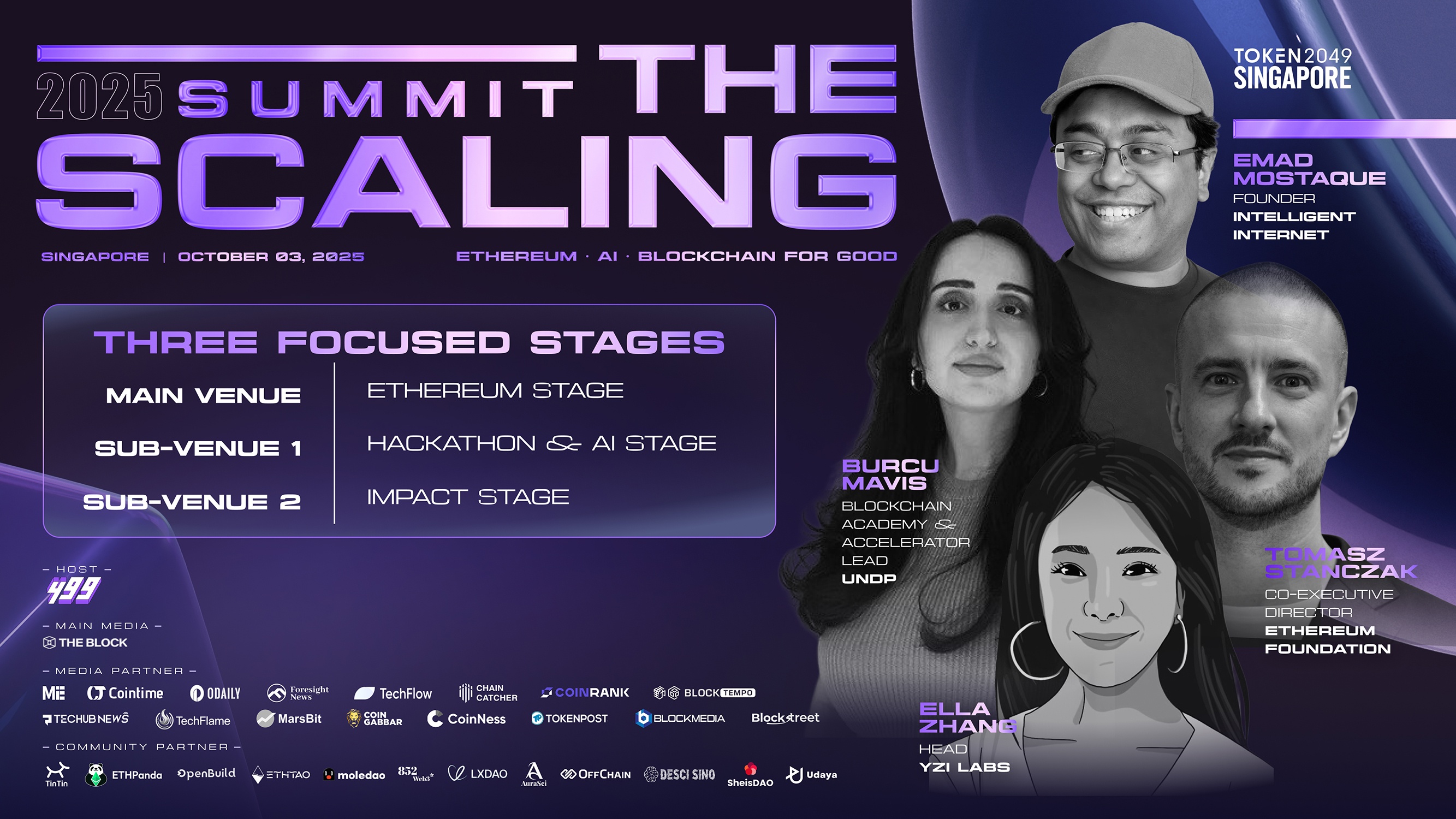 499 will host The Scaling Summit on October 3rd during TOKEN2049, focusing on Ethereum · AI · Blockchain Three themed stages for Good