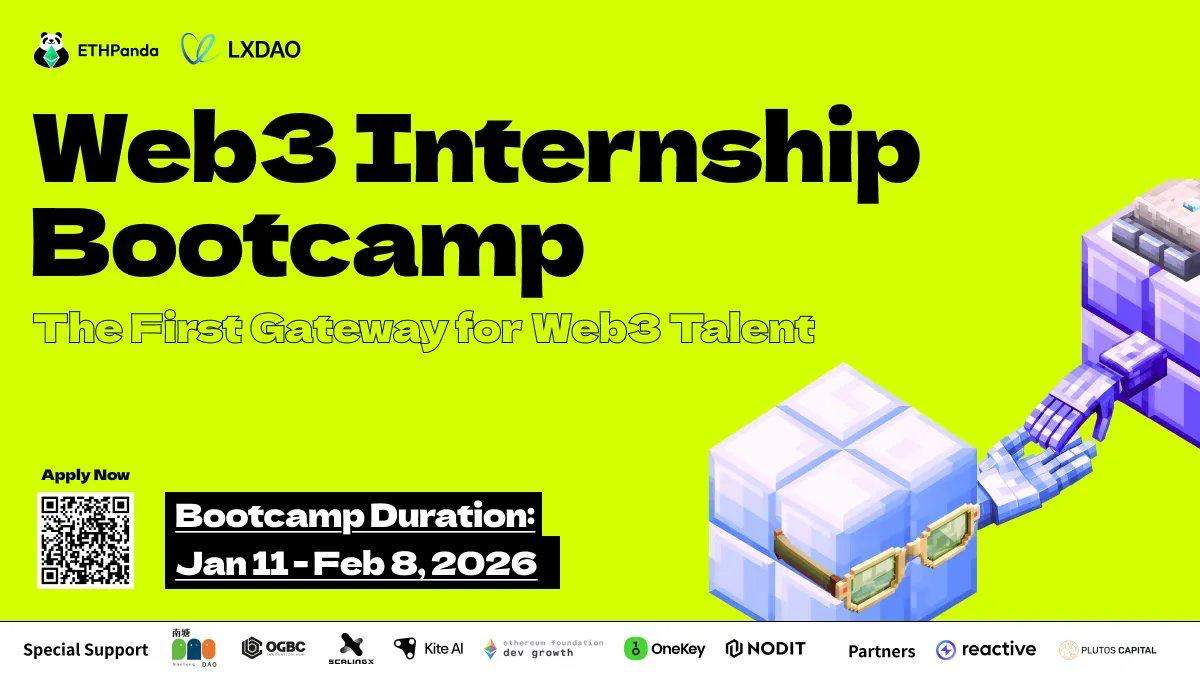 The "Web3 Internship Program" is a completely free, growth-oriented introductory initiative for university students and newcomers to Web3. Jointly launched by ETHPanda and LXDAO, it is dedicated to providing aspiring entrants into the blockchain industry with systematic learning, hands-on training, job placement support, and community companionship. The program aims to help participants overcome information barriers, chart a practical path, and successfully take their first step into Web3.